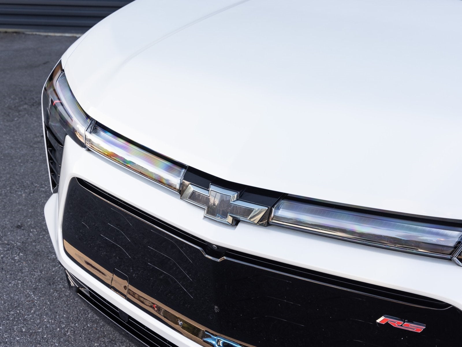 The exterior features a sleek and athletic design with distinctive RS styling cues, sharp body lines, and a confident stance that highlights its performance oriented character. The Iridescent Pearl Tricoat finish enhances the Blazer EVs futuristic design while maintaining a refined presence on the road.