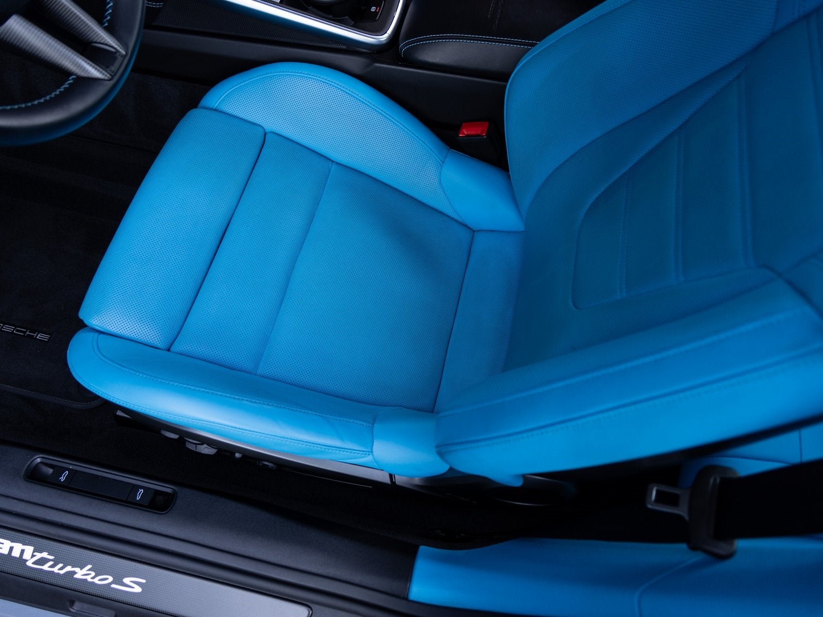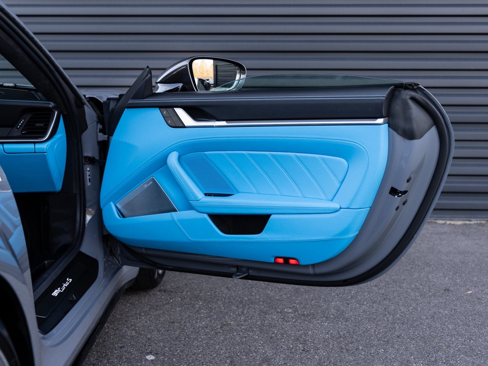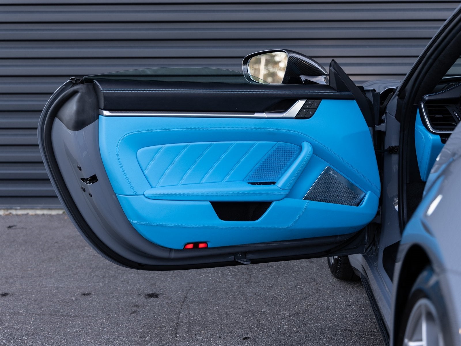 Inside, the cabin showcases exceptional craftsmanship with the Exclusive Manufaktur Leather Interior extending to unique trim details such as Rear Speaker Trim Finish in Leather and Passenger Cupholder Trim in Leather. Comfort and performance features include Ventilated Front Seats, the Heated GT Sport Steering Wheel with Trim in Matte Carbon Fiber, Sun Visors in Leather, Pedals and Footrest in Aluminum, and Door Sill Guards in Matte Carbon Fiber, Illuminated. Premium audio is delivered by the Burmester High End Surround Sound System. Technology and convenience features include Ambient Lighting, Surround View, Lane Change Assist, and the Storage Package.