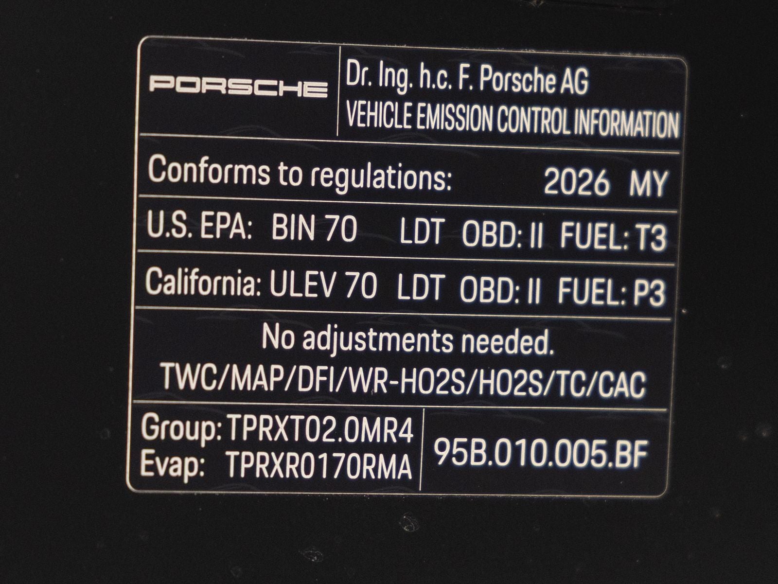 All information is subject to change without notice. Neither Porsche Cars North America, Inc. nor the manufacturer can accept liability arising from the use of any information contained herein. Only an actual invoice issued by PCNA at the time a vehicle is sold to an authorized Porsche Center may be used as an official indication of equipment and pricing. The Total Manufacturers Suggested Retail Price (MSRP) shown excludes taxes, title, registration, other optional or regionally required equipment, dealer charges, and any potential tariffs. The price and availability of Individually Commissioned Equipment (CXX) can be determined only after review and analysis by the manufacturer. Actual selling prices are set by dealers and may vary.